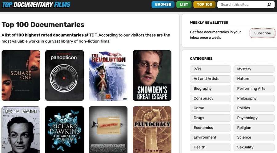 Hvis du er på udkig efter gratis dokumentarfilm, finder du masser på Top Documentary Films. Der er et varieret udvalg, herunder amatørdokumentarfilm, som du måske ikke har hørt om før.