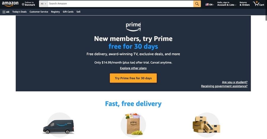 Ingen liste over gratis forsendelse ville være komplet uden at nævne Amazon Prime. Hvis du betaler for et medlemskab, vil mange produkter på webstedet være berettiget til gratis international forsendelse. Udover gratis forsendelse er der flere andre fordele ved Amazon Prime.
