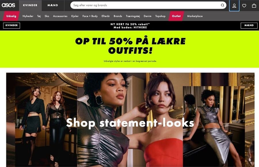 ASOS har både herre- og dametøj, der primært henvender sig til folk mellem 20 og 35 år. De tilbyder mere end 80.000 forskellige varer. International forsendelse er gratis til udvalgte lande rundt om i verden, hvis du bruger over et vist beløb – normalt 320,00 kr., men tjek hjemmesiden for at finde det krævede beløb.