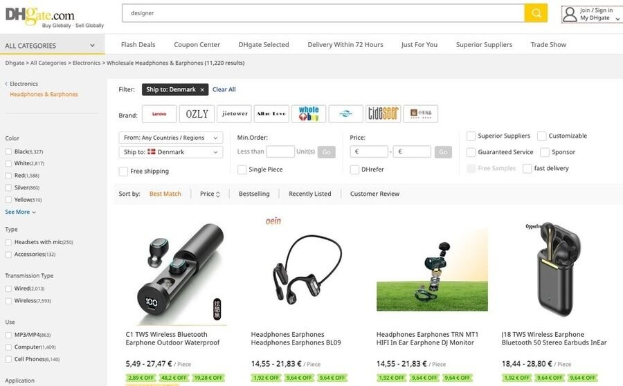 DHGate er et internationalt shoppingsite, der har specialiseret sig i at sælge no-name-produkter fra Kina. Siden henvender sig primært til grossister og ikke til almindelige forbrugere. Gratis levering er tilgængelig over hele verden. Hvis du leder efter hjemmesider, hvor du kan købe stort ind, er DHGate helt sikkert en god mulighed.