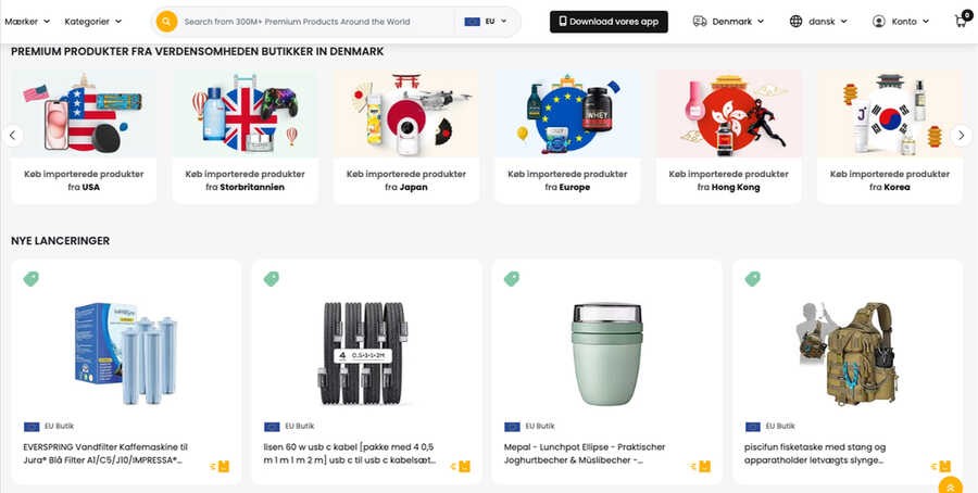 Platformen tilbyder et kæmpe katalog med over 100 millioner produkter, herunder eksklusive mærker fra USA, Storbritannien, Japan, Korea og mange flere.